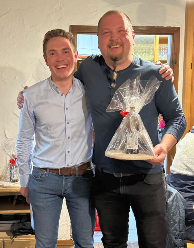 Ein kleines Dankeschön dem scheidenden 2. Vorstand (v.l. Christian Brandhofer, Mike Welzmiller)